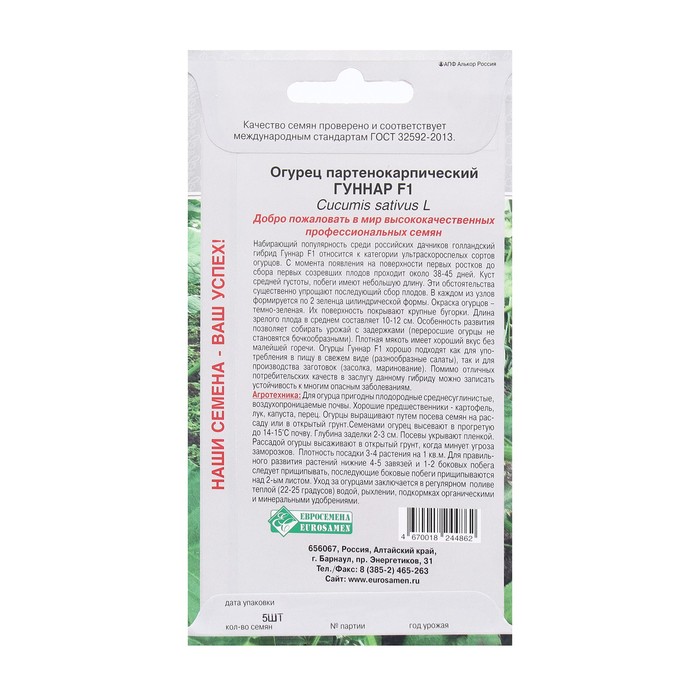 Семена Огурец партенокарпик Гуннар F1, 5 шт