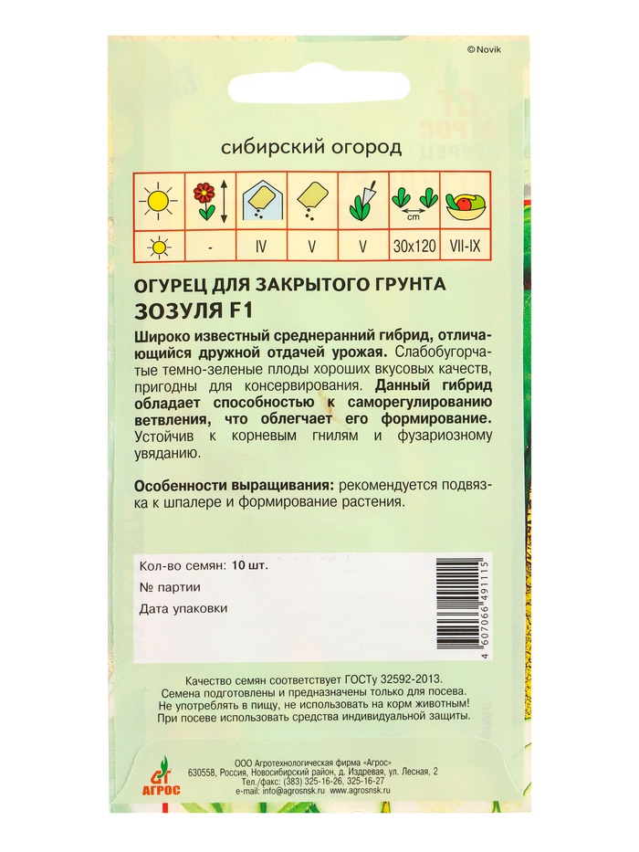 Семена Огурец "Зозуля" F1 10 шт
