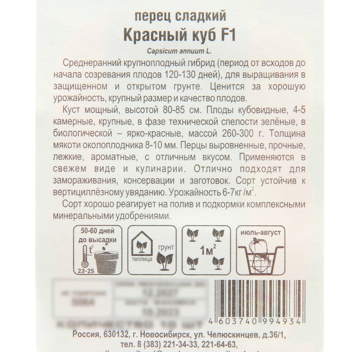Семена Перец Красный куб, F1, 10 шт., «Сибирский сад»
