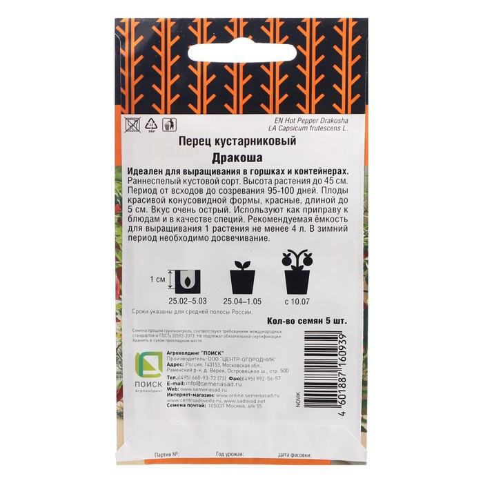 Семена Перец кустарниковый "Дракоша", 5 шт