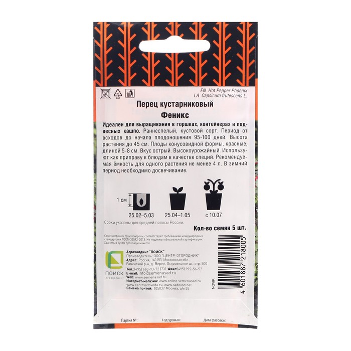 Семена Перец острый кустарниковый "Феникс", 5 шт