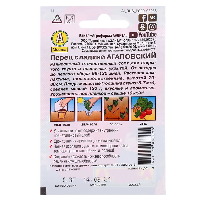 Семена Перец сладкий "Агаповский" "Лидер", 20 шт ,