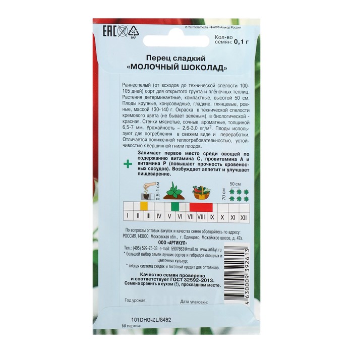 Семена Перец сладкий "Молочный Шоколад" раннеспелый, 0,1 г