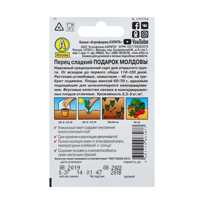 Семена Перец сладкий "Подарок Молдовы" "Лидер", 0,3 г ,