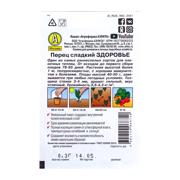 Семена Перец сладкий "Здоровье" "Лидер", 0,3 г ,