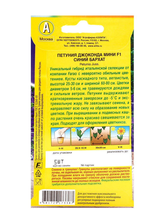 Семена Петуния Джоконда мини F1 синий бархат, 5 шт.,