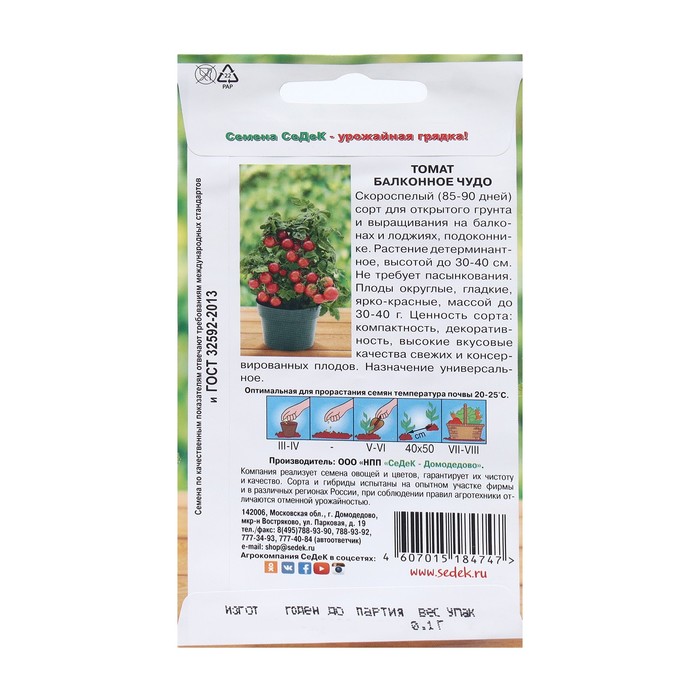 Семена томат «Балконное чудо», цветной пакет, детерминантный, низкорослый, 0.1 г