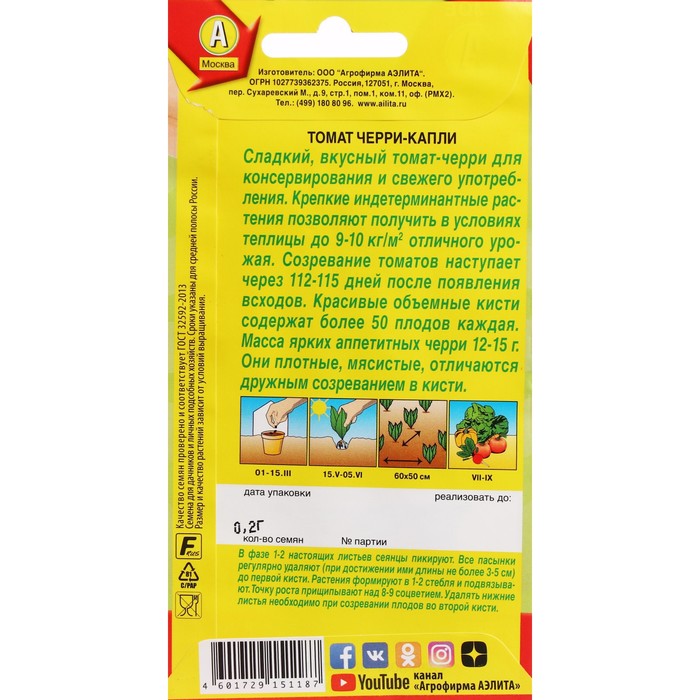 Семена Томат «Черри-капли», 0.2 г, «Агрофирма АЭЛИТА»