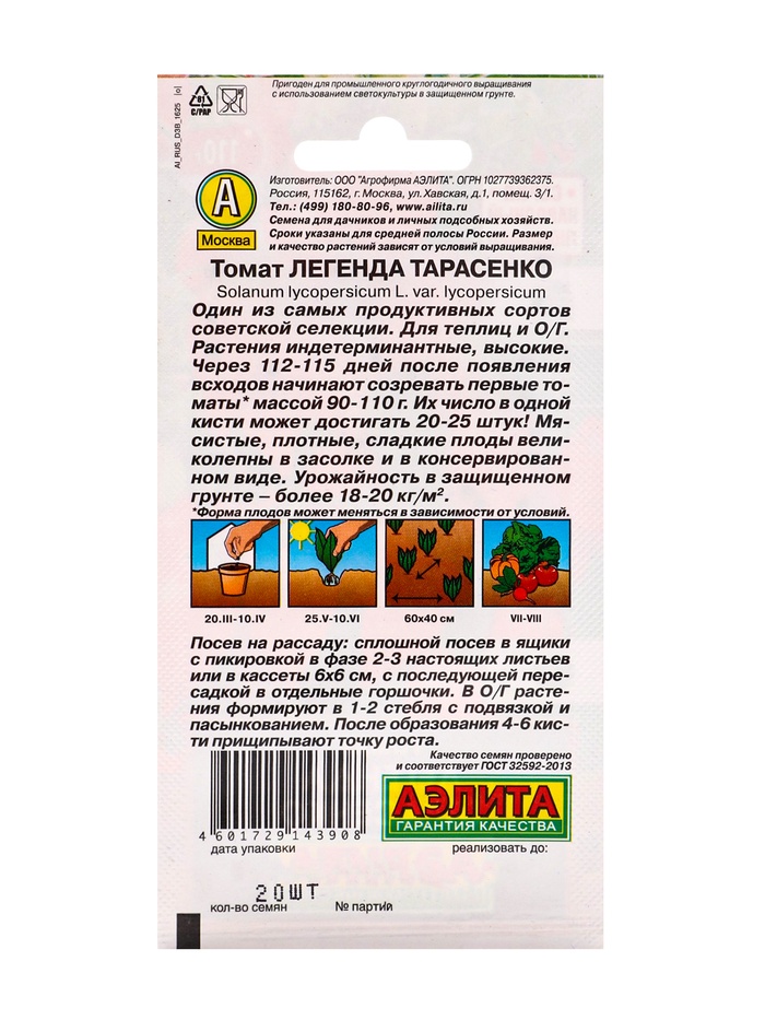 Семена Томат Легенда Тарасенко Ср Народный любимец Ц/П 20шт