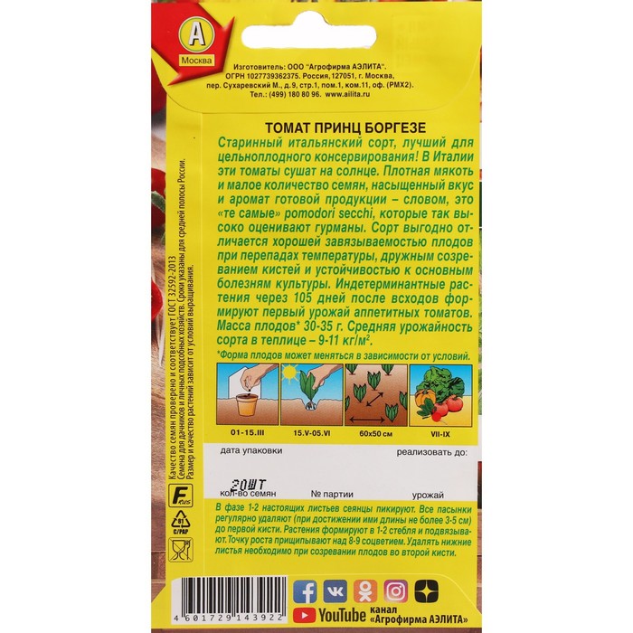 Семена Томат "Принц Боргезе", ц/п, 20 шт
