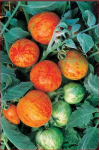 Среднеспелый (90-105 дней), полудетерминантный (50-120 см). Плоды не крупные, округлой или сливовидной формы, цвет красный, в жёлтую полоску, массой до 100 гр., пушистый. Куст голубой, бархатный, лист среднего размера, голубоватой окраски. Очень красивый и редкий сорт.