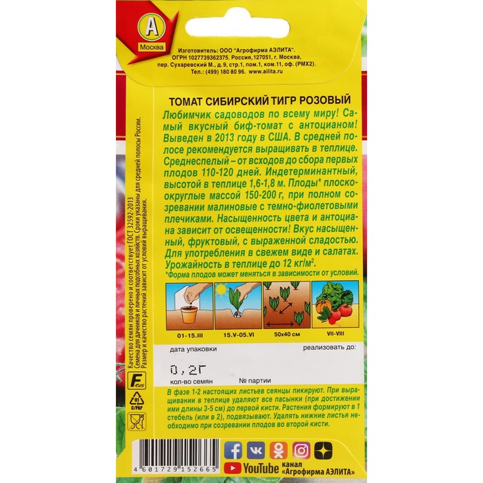 Семена Томат "Сибирский тигр", розовый, ц/п, индетерминантный,высокорослый , 0,2 г