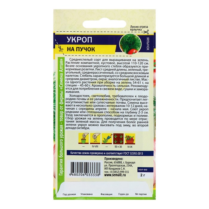 Семена Укроп "На пучок", ц/п, ц/п, 2 г