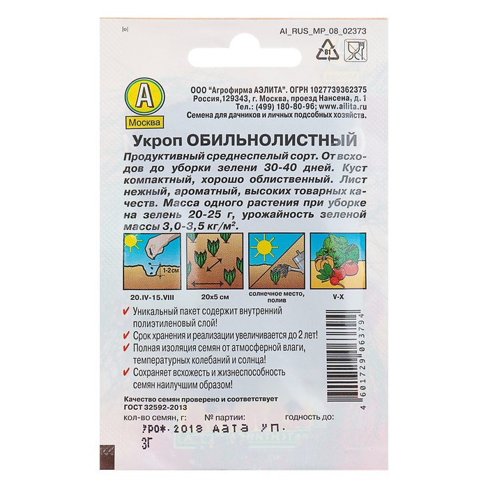 Семена Укроп "Обильнолистный" "Лидер", 2 г ,