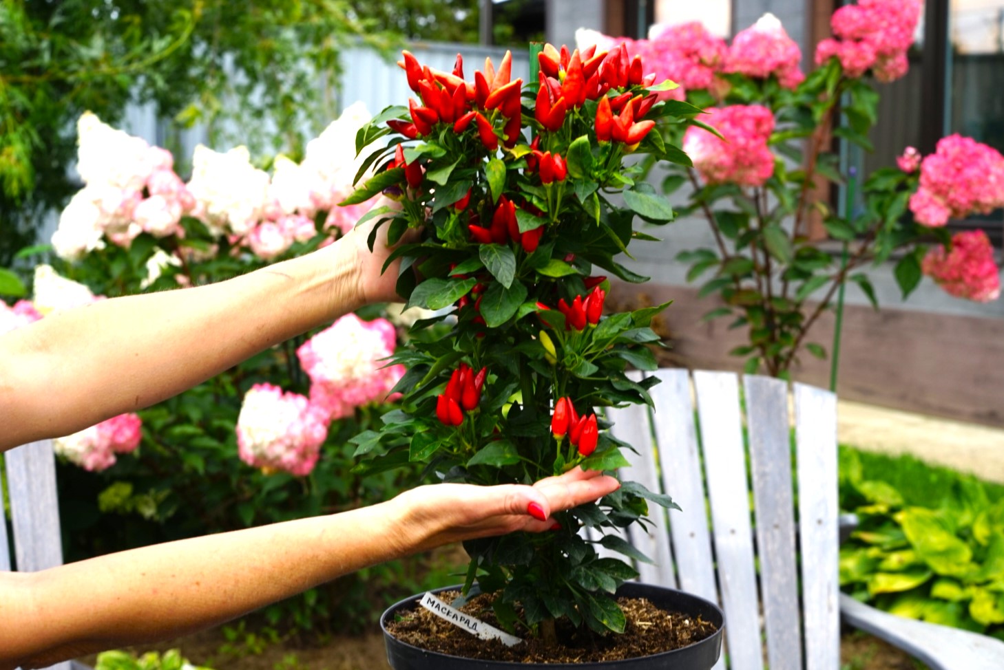 Куст компактный но очень урожайный. Может выращиваться в небольшом горшке от 3 до 5 литров. На кусте завязывается множество плодов растущих вертикально. Абсолютно неприхотлив! Высокая декоративность, подходит для украшения дома, палисадников и цветников.