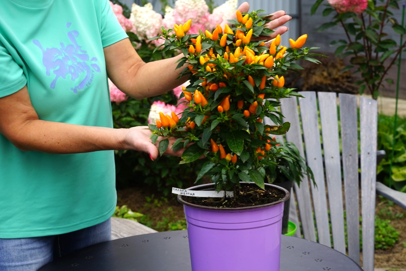 Куст компактный, плотный, шарообразный. Может выращиваться в небольшом горшке от 2 до 5 литров. На кусте завязывается множество плодов растущих вертикально. Абсолютно неприхотлив! Высокая декоративность, подходит для украшения дома, палисадников и цветников.