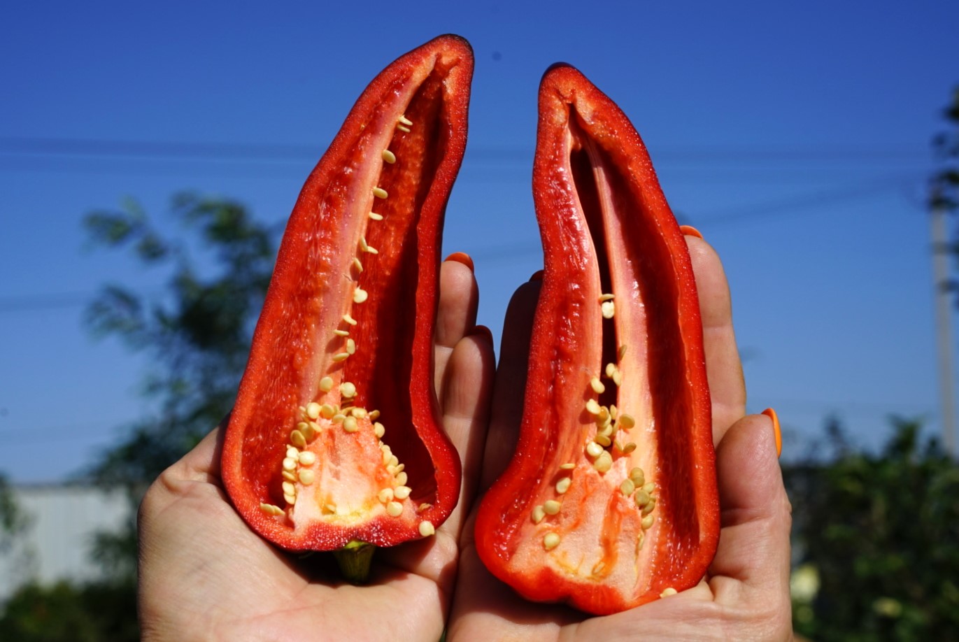 Высота до 80-100 см. Скороспелый (110-117 дней от всходов до технической спелости) сорт. Перцы конусовидной формы. Масса 120-150 гр. Цвет плодов в технической спелости фиолетовый, в биологической — красный. Перец толстостенный, толщина стенки до 4,5-5,0 мм. Мякоть стенки сочная, сладкая.