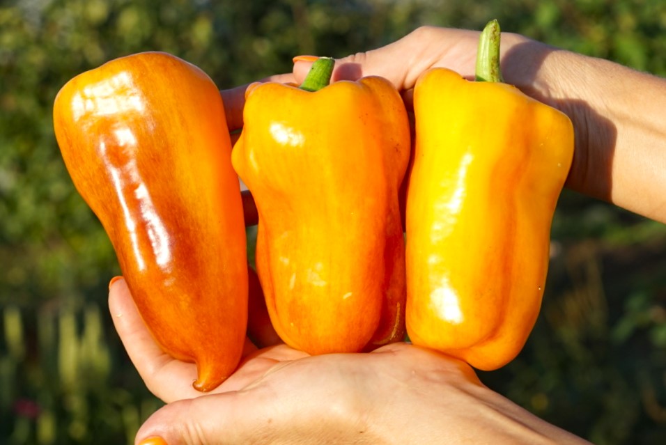 Куст компактный, мощный, сильно нагруженный урожаем и требует опоры. Красочные, декоративные перцы, кусты выглядят очень ярко и выделяются необычным видом плодов.