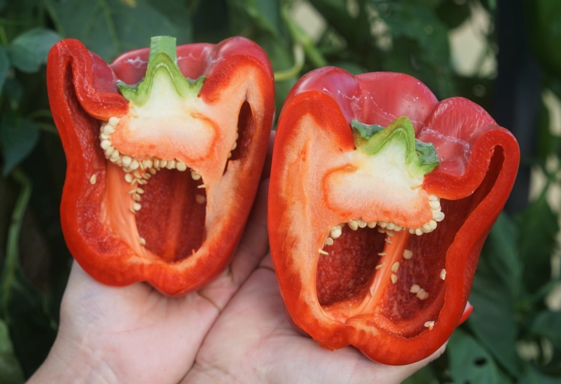Среднеспелый, 120-135 дней. Высота 60-70 см. Очень крупный, кубовидный. Масса 250-400 грамм. Цвет — вишнёвый. Толстостенный (до 8 мм. и более), мясистый. Растение сортовое, не гибрид!