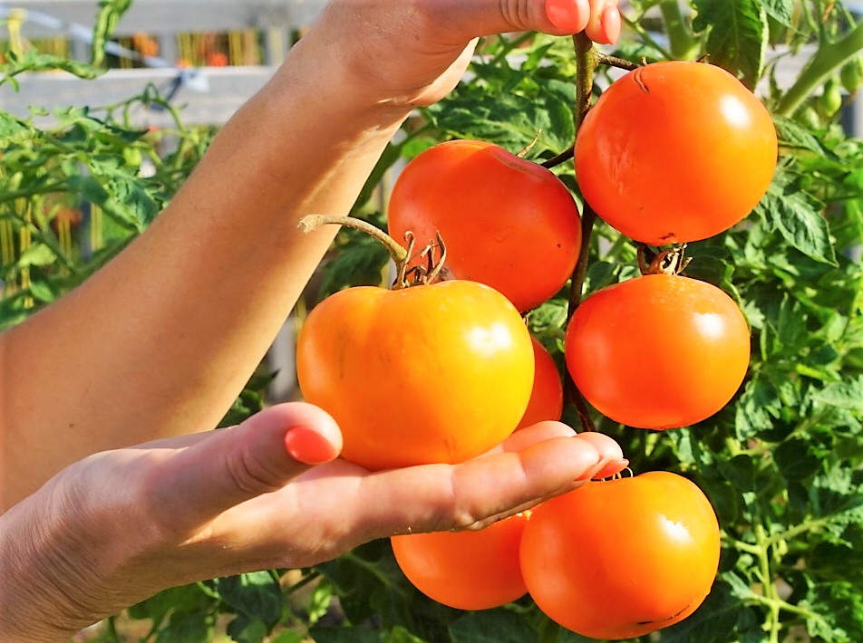 Детерминант, до 1 м. Раннеспелый. Плоды округлые. Масса 100-150 и до 200 грамм. Цвет оранжевый. Мякоть сочная, ароматная, сладкая. Сорт урожайный при любых условиях выращивания. На нижних кистях помидоры более крупные, чуть ребристые.
