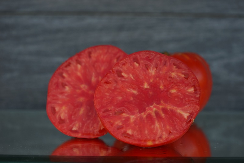 Среднеднеспелый индетерминантный сорт. Для теплиц. Куст крепкий, можно выращивать в 2 стебля. Для получения более крупных плодов можно нормировать количество завязей в кистях или вести растение в 1 стебель. Помидоры Красные, крупные бифштексы. Массой 500-650 грамм, отдельные плоды более 1 кг. Сплошное помидорное мясо, маленькие семенные камеры. Прекрасный сбалансированный вкус.