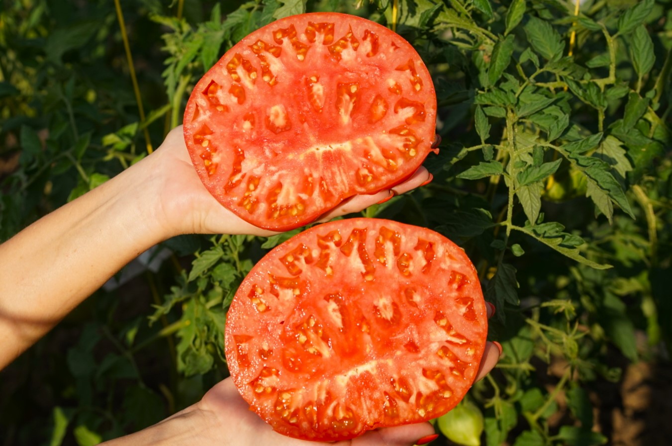 Индет, до 1,8 м. Среднеспелый. Помидоры сердцевидной формы, с пухлыми плечиками. Масса 300-450 грамм, до 1000 грамм. Цвет красный. Мякоть мясистая, сочная, многокамерная. Вкус богатый, сладкий.