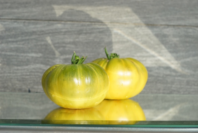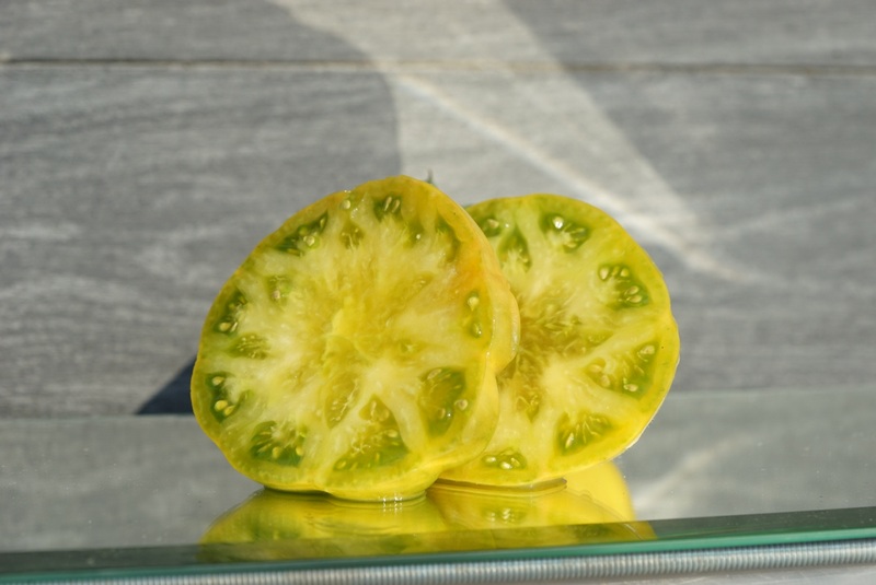 Среднеспелый индетерминантный сорт. Высота в теплице до 200 см. Помидоры плоскокруглой формы с пышными плечиками, масса 250-500 грамм. Мякоть ярко-зеленого цвета с оттенками охры. На разрезе сахарная, сладкая, с пряными нотками. Абсолютно неприхотливый сорт.