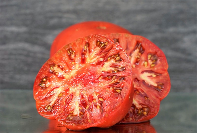 Индет, до 2 м. Среднеранний. Помидоры плоскокруглой формы с присобранными плечиками. Масса 200-300 грамм, до 350 грамм. Фиолетово-бордово-коричневого цвета снаружи и темно-бордовые внутри. Плотные, мясистые. Терпкий сладкий вкус с малозаметной кислинкой.