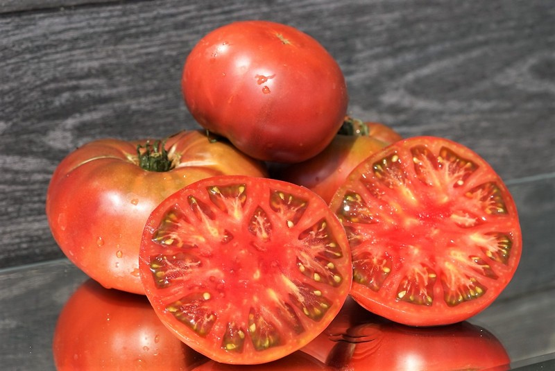 Детерминант, штамб, до 1,0 м. Среднеспелый. Помидоры округлые и немного плоские, тёмно-бордово-коричневые, с малиновой мякотью, массой 80-200 грамм и до 350 грамм. Плоды упругие и мясистые, сладкие, с пряными нотами. Назначение — для салатов и для переработки на густые соки и соусы.