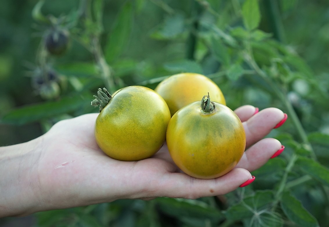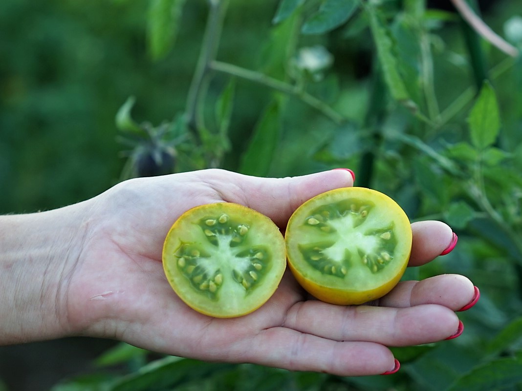 Штамб,. Высота до 0,7 м. в открытом грунте, 1,2 м  — в теплице. Среднеспелый. Помидоры округлые. Масса 60-120 грамм. Замечательная окраска — на светло-зеленом фоне темно-зеленый и розовый румянец. Различные оттенки и насыщенность вкуса проявляются в конце сезона при большом количестве солнца.