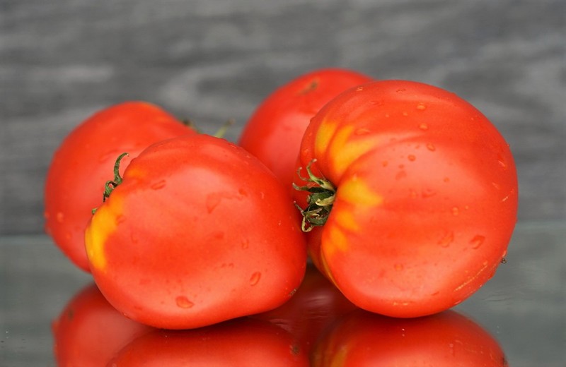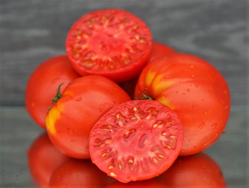 Детерминант, штамб, 0,4-0,8 м. Среднеспелый. Помидоры плоскокруглые, гладкие. Цвет красный. Масса 100-230 грамм, отдельные плоды до 250 грамм. Многокамерные, красивые на разрезе. Мясистые, очень сладкие. Назначение салатное.