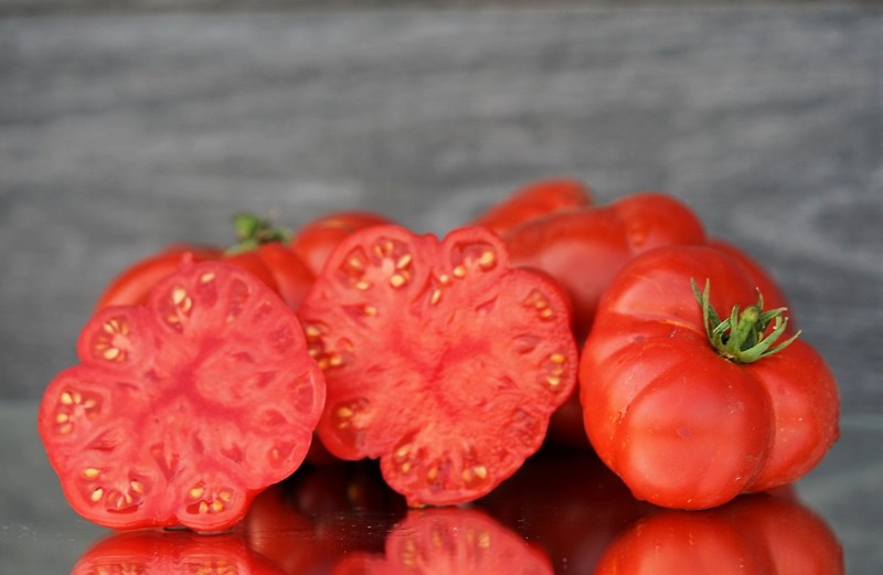 Индет, до 2,0 м. Среднеспелый. Помидоры плоскокруглой формы, с пышными взъерошенными плечиками. Масса 150-250 грамм, отдельные плоды до 400 грамм. На красном фоне золотистые крапинки и полоски. Чем сильнее освещённость,тем наряднеее будут выглядеть помидоры. Мякоть мяясистая, сочная. Вкус сбалансированный, с преобладанием сладости.