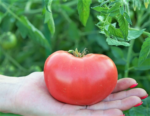 Индет, до 2,5 м. Среднеспелый. Помидоры сердцевидные. Масса до 500 грамм. Цвет розовый. Мясистые, малосемянные. Хороший сбалансированный вкус с небольшой кислинкой.