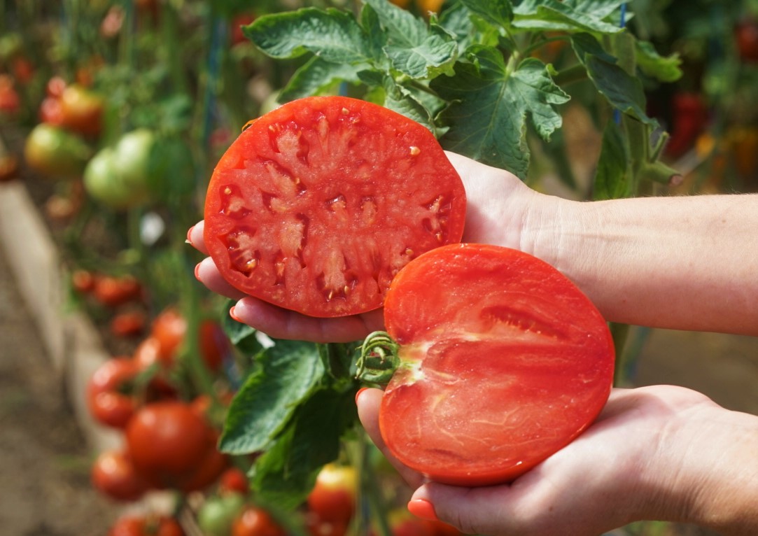 Индет. Среднеспелый. Помидоры широко-сердцевидной формы, с небольшой ребристостью. Масса 500- 600 грамм, в идеальных условиях до 800 грамм и более. Цвет ярко красный, на разрезе темно-малиновый. Мякоть — плотное помидорное мясо, сахаристое на изломе. Насыщенный сладкий вкус без кислинки.