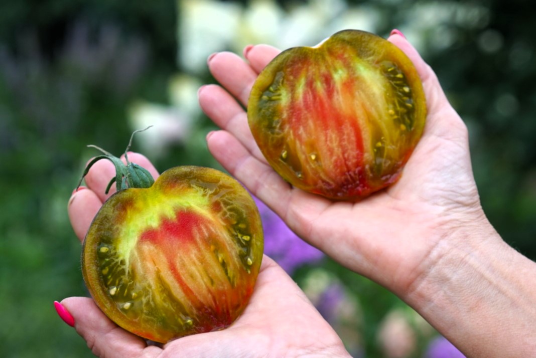 Индет, более 1,8 м. Среднеранний. Форма сердцевидная. Масса 200-400 грамм. Многоцветная шкурка с антоцианом. Мякоть трёцветная, нежная, сладкая, с фруктово-ягодными оттенками.