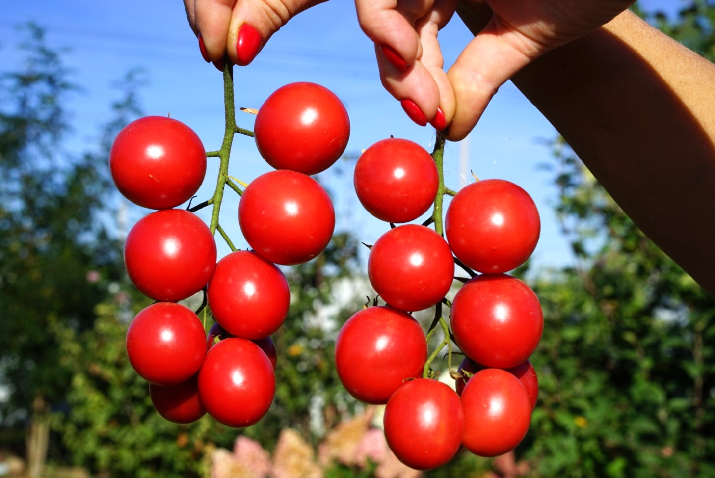 Индет. Высота до 180 см. Среднеранний. Форма округлая. Масса 30-40 грамм. Цвет ярко-малиновый. Вкус сладкий, без кислоты. Мякоть плотная, сочная.
