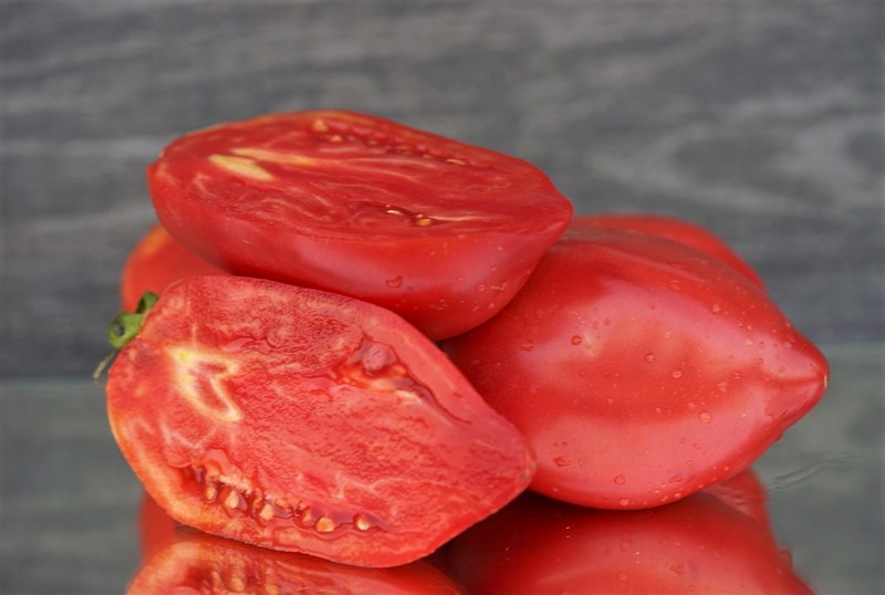 Индет, до 2,5 м. Среднеранний. Помидоры —  крупные сливы с носиком. Масса 200-350 грамм, на верхних кистях чуть мельче — 150-250 грамм. Цвет розовый. Мясистые, хорошего сладкого вкуса. Не склонны к растрескиванию.