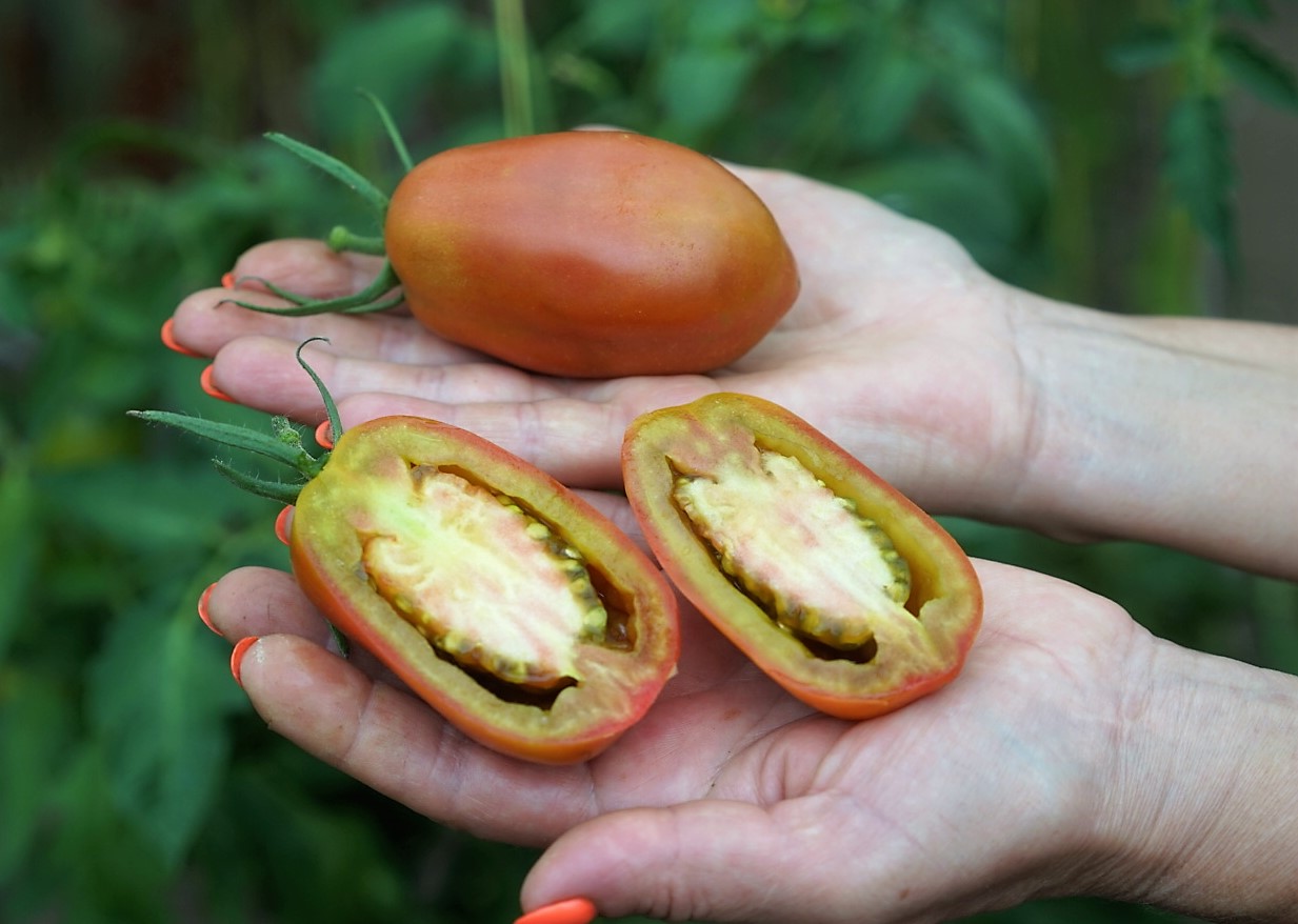 Назначение универсальное. Хороший томат для вяления — мало сока в семенных камерах, много сухого вещества.