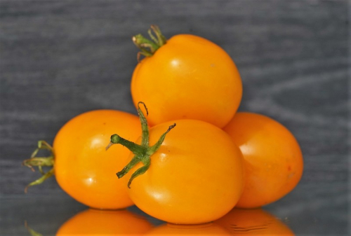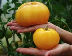 Детерминант, 0,6-0,7 м.. Среднеранний. Помидоры грушевидной формы.Цвет ярко-Желтые. Масса плодов до 100 грамм. Мясистые, сахаристые, Вкус сладкий.