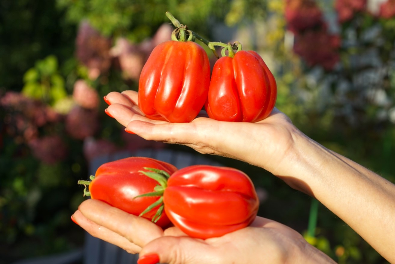 Куст мощный, можно вести в два стебля. В кисти 6-8 плодов. Один из лучших ребристых сортов. Урожайный, плоды прекрасно хранятся и дозариваются. Исключительно нарядный сорт!