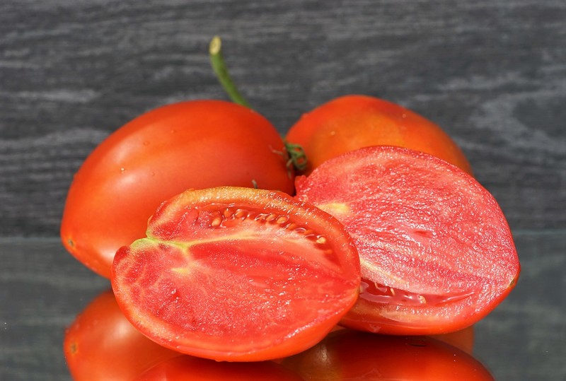 Индет, до 2,0 м. Среднеранний. Помидоры в форме крупной ровной сливы с заострённым носиком. Масса 250-400 грамм. Цвет ярко-красный снаружи и внутри. Мякоть мясистая, малосемянная, сладкого вкуса без кислинки.