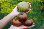 Среднеспелый индетерминантный сорт. Для теплиц. В теплице до 200 см. Можно выращивать в 2-3 стебля. Помидоры шоколадного цвета с такой же шоколадной мякотью Замечательно сладкие. С фруктовым, пряным ароматов. Форма округлая с небольшой ребристостью на плечиках. Масса 100-200 грамм. Очень урожайный сорт.