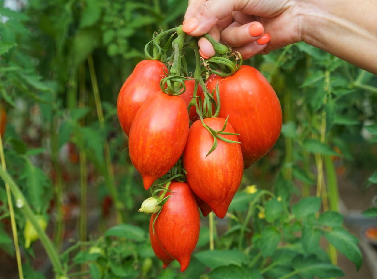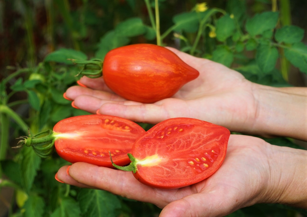 Индет до 1,8 м. Среднеранний. Форма — вытянутые сливки с носиком. Масса 90-120 грамм. Цвет — желтые полоски на ярко-красном фоне. Мякоть плотная, сладкая.