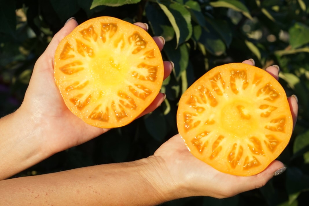 Индет, до 1,8 м. Раннеспелый. Форма — плоскоокруглые бифштексы. Масса 300-700 гр. Цвет жёлто-оранжевый. Мякоть вкусная, маслянистая, малосемянная, сладкая с кислинкой. Яркий, фруктовый аромат.