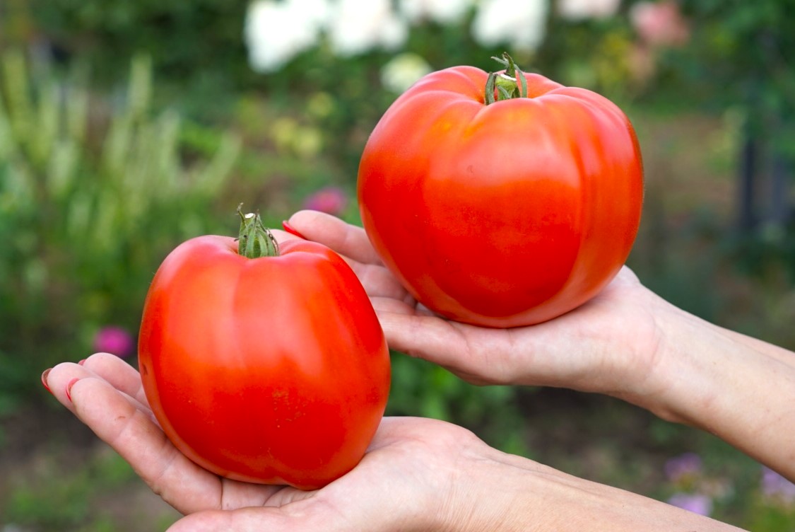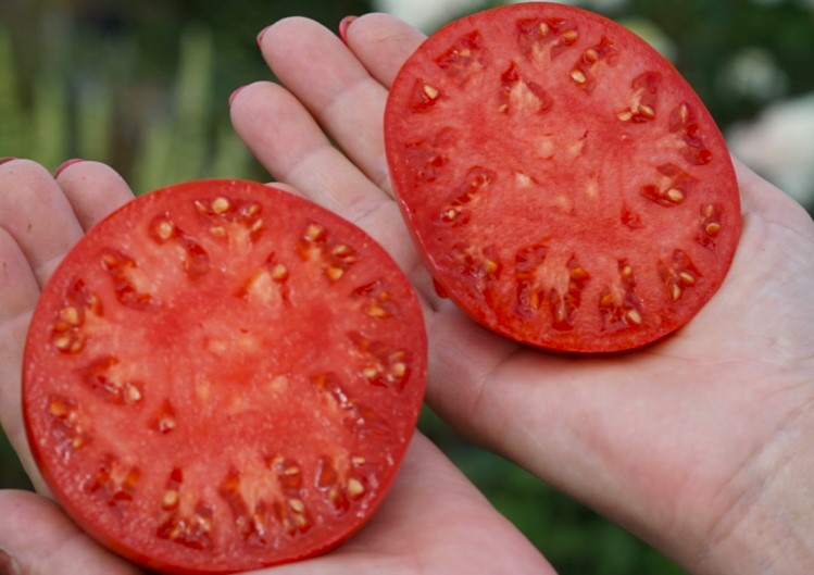 Индет, до 2,0 м. Среднеспелый. Форма сердцевидная или широко-сердцевидная, с легкой ребристостью у плодоножки. Масса 300-600 грамм и более. Цвет красный. Мякоть ароматная, плотная, мясистая, с малыми семенными камерами. Вкус отличный, сладкий с ароматом классических томатов.