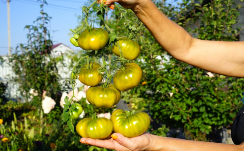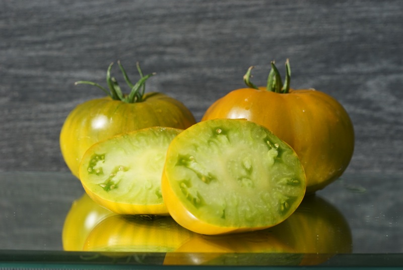 Детерминантный раннеспелый сорт. Для теплицы и открытого грунта. В теплице высотой до 130 см., в открытом грунте – до 100 см.. Спелые помидоры темно-зеленые с бронзовым отливом, массой 200-350 грамм и до 500 грамм.  Форма плоскокруглая. Сладкие, мясистые, с фруктовым послевкусием. Урожайность очень высокая.