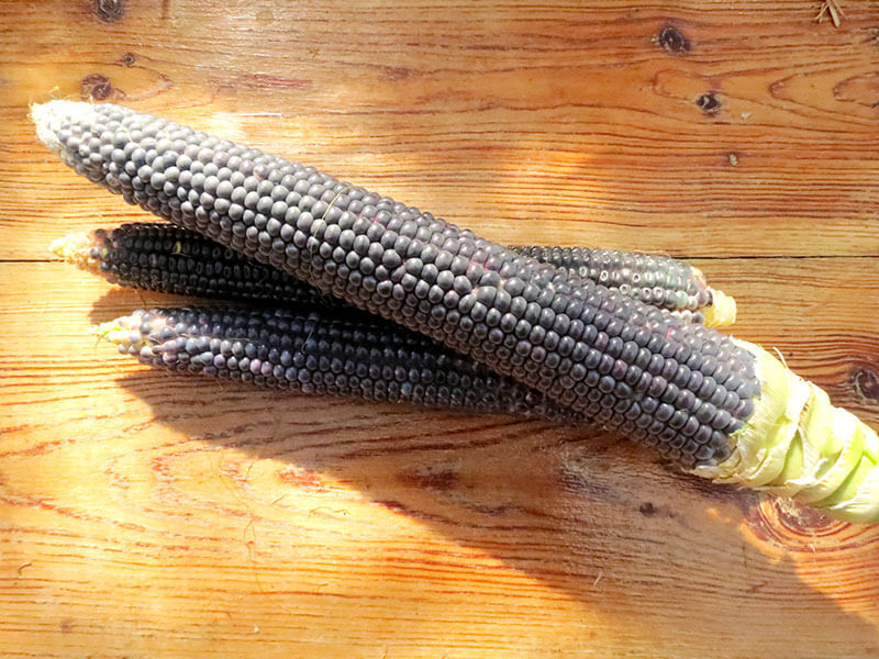 Традиционная кукуруза индейцев хопи из Северной Аризоны. Сорт средне-поздний, засухоустойчивый, растения очень высокие, до 3 м. На одном растении формируется несколько длинных (30-40 см) початков с замечательными синими или темно-бордовыми зернами. Зерна имеют высокое содержание белка, подходят для изготовления муки и крупы. Незрелые початки используют как сладкую кукурузу.