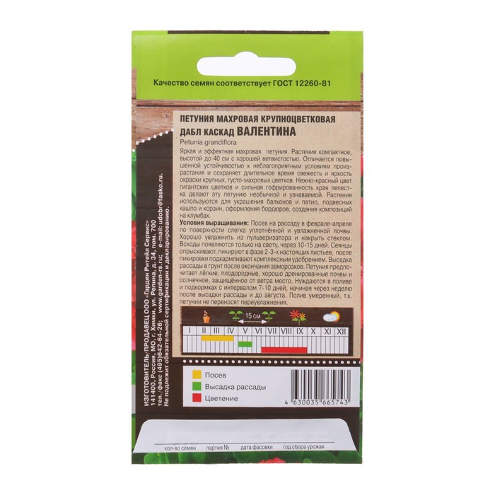Семена цветов Петуния махровая крупноцветковая "Дабл Каскад Валентина", 10