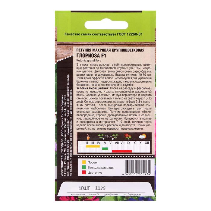 Семена Петуния "Глориоза" махровая крупноцветковая, 10