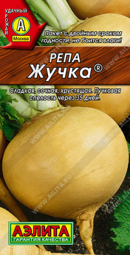 Раннеспелый сорт, который может дать два урожая за сезон. Дружно формирует корнеплоды через 47-55 дней от появления всходов. Но «похрумкать» классической репкой можно уже через 35-45 дней, при наступлении пучковой спелости. Такая репка аппетитна и вкусна преимущественно в свежем виде. Округлые корнеплоды имеют желтую, сладкую, сочную мякоть. Нежные молоденькие листочки с большим количеством каротина пригодны для салатов. Корнеплоды осеннего урожая массой 120-140 г отлично хранятся. Урожайность 2,5-3 кг/м2.